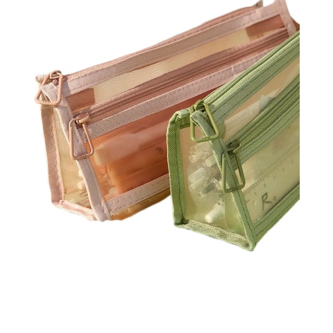 H网纱莫兰迪笔袋,ins简约透明双层大容量文具学生考试拉链收纳袋kk