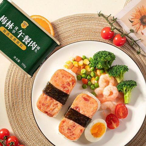58( MF278 rHyyUrputbf) https://m.tb.cn/h.ib22kaR 【拍3罐】中粮梅林优享午餐肉罐头198g涮火锅泡面夜宵即食长途