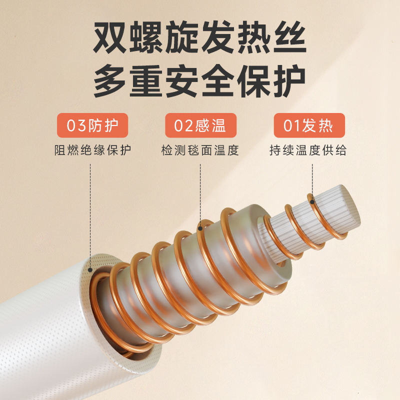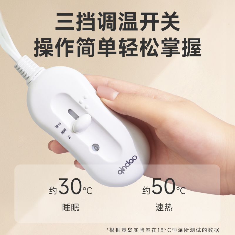 单人速热电热毯,低功率不跳闸宿舍可用,恒温暖床,快速温暖,3档机械开关,防水阻燃,过热保护