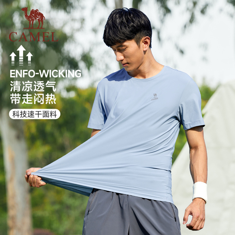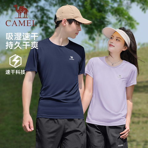 骆驼健身速干衣T恤短袖男士夏季薄款透气休闲户外运动跑步上衣女