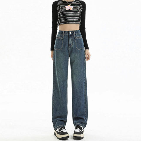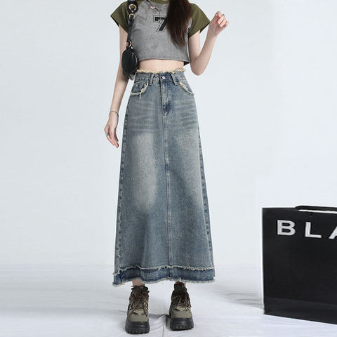 【牛仔系列】韩系时尚牛仔背小众显瘦半身裙高腰牛仔裤阔腿裤xc
