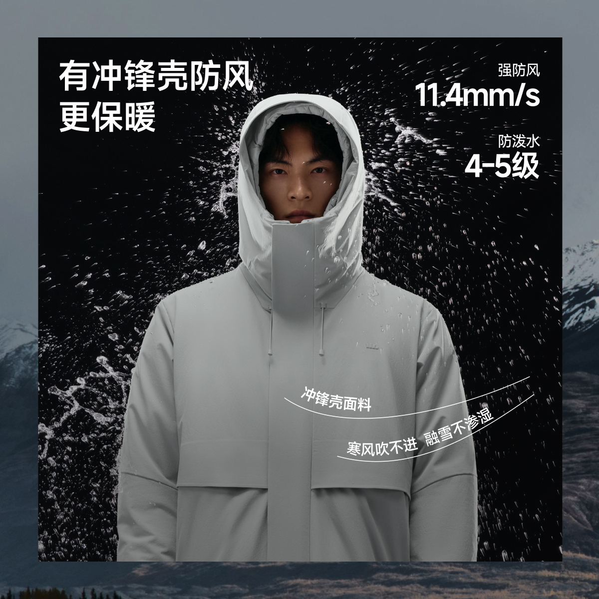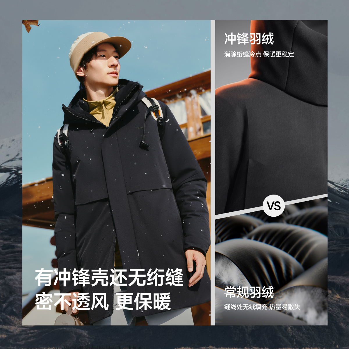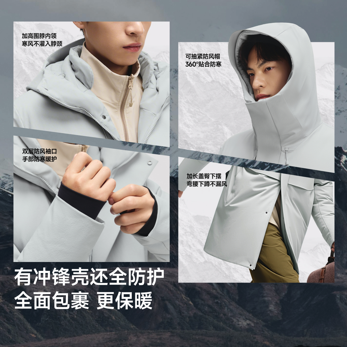 蕉下蕉下羽绒服男款冬季户外防风防刮耐磨白鸭绒保暖中长款羽绒服。