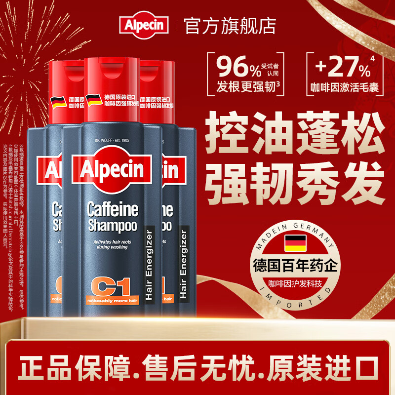欧倍青(Alpecin)德国进口洗发水强韧发根洗头膏男女适用洗发露250ml*3 C1咖啡因洗发水250ml*3瓶