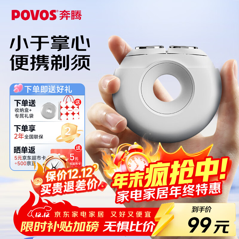 奔腾(POVOS)剃须刀甜甜圈2.0电动迷你便携T003月光白刮胡刀智能剃胡刀 新年送男友老公父亲生日圣诞实用礼物