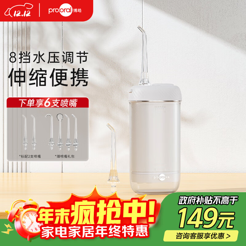 博皓(prooral)冲牙器/洗牙器/水牙线/洁牙器 牙齿冲洗器 便携式设计 F23 海鸥灰【出行必备】