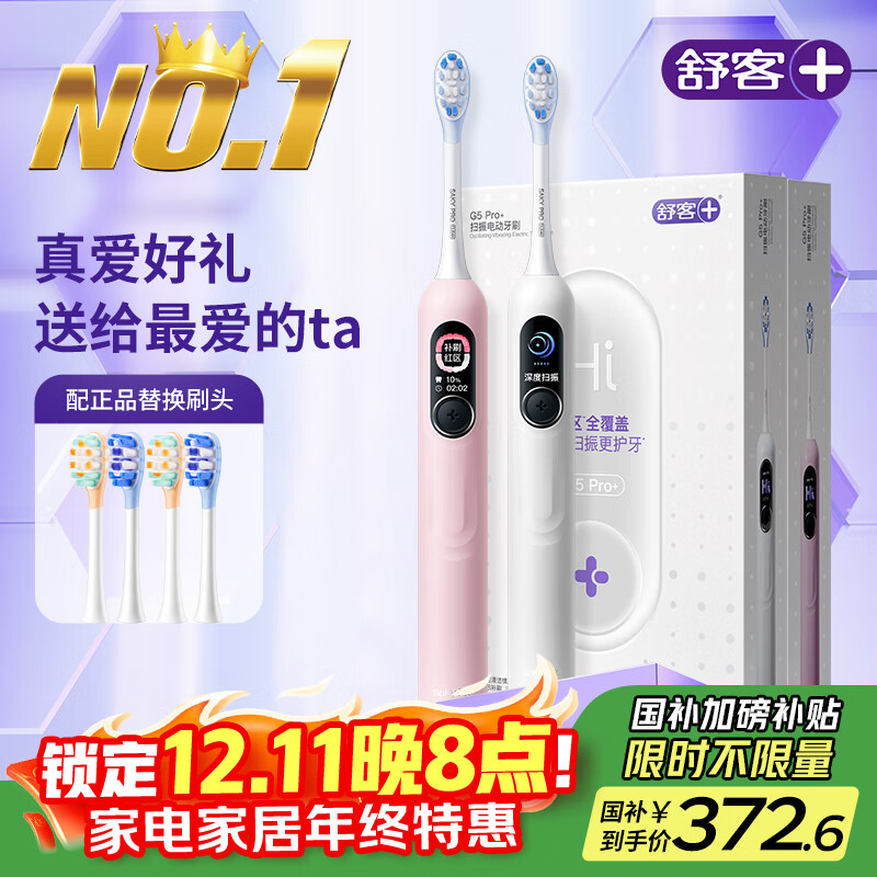 舒客大屏刷电动牙刷智能换区成人/学生送男友/女友 情侣生日礼物 G5 Pro+情侣款(白+粉)