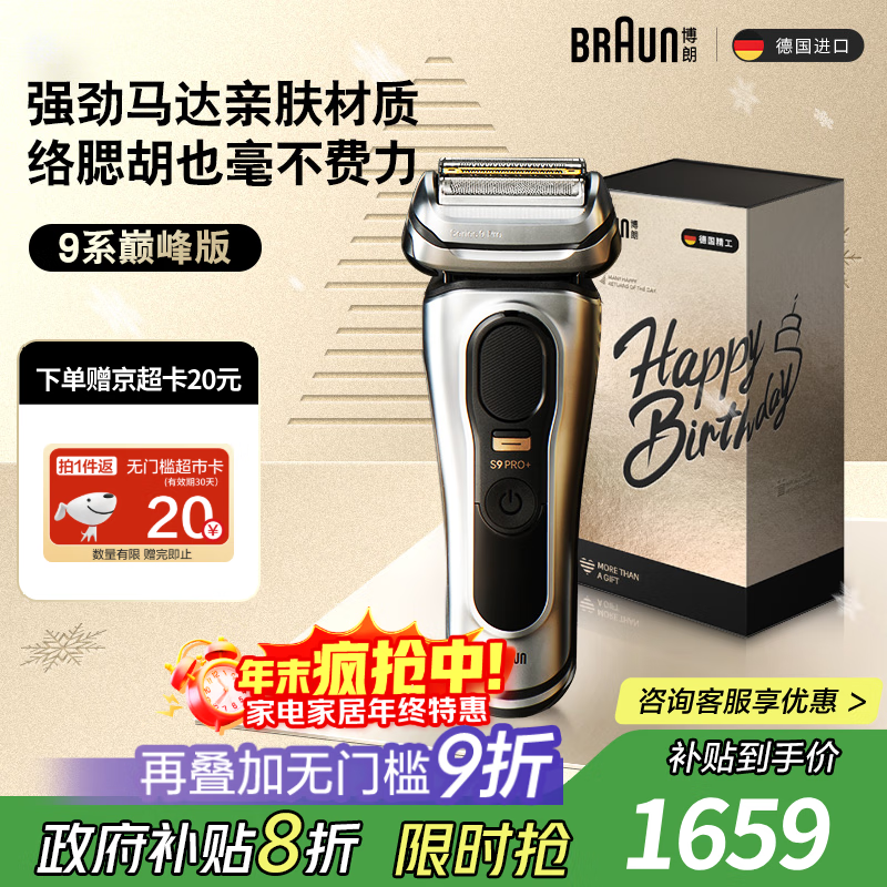 博朗9系巅峰版礼盒电动剃须刀整机德国进口往复式剃须刀刮胡刀男士送老公男朋友生日礼物 男
