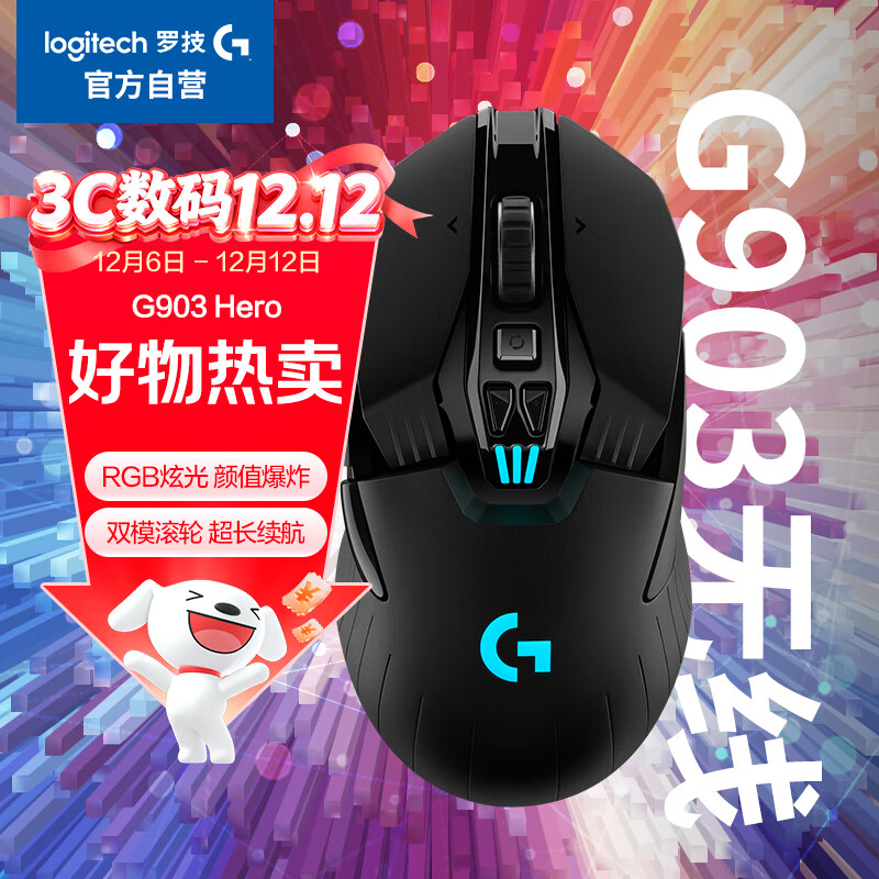 罗技(G)G903 LIGHTSPEED 升级版 无线游戏鼠标 RGB 升级HERO传感器 吃鸡LOL鼠标 左手鼠标 右手鼠标