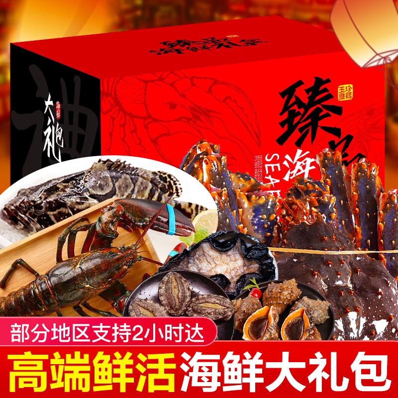 【鲜活】海鲜礼盒鲜活大礼包年货礼品套餐团圆饭组合 2988型6种9斤含鲜活大龙虾/鲍鱼/珍宝蟹