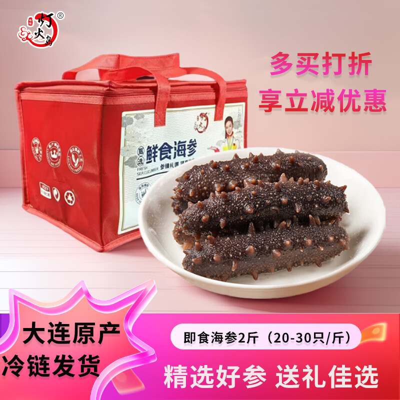 灯火岛即食海参 大连生鲜冷冻辽刺参即食刺参 单个独立包装年货海鲜礼盒 即食海参1000g(20-30只/斤)礼袋款