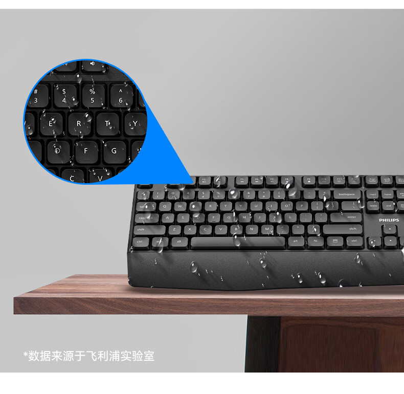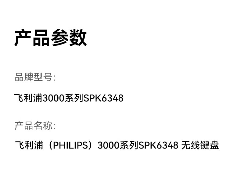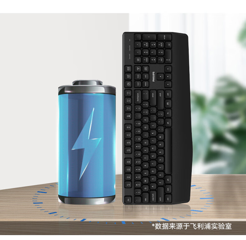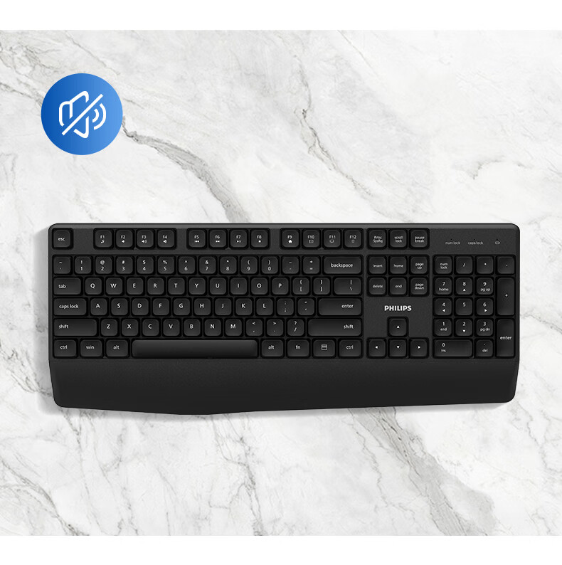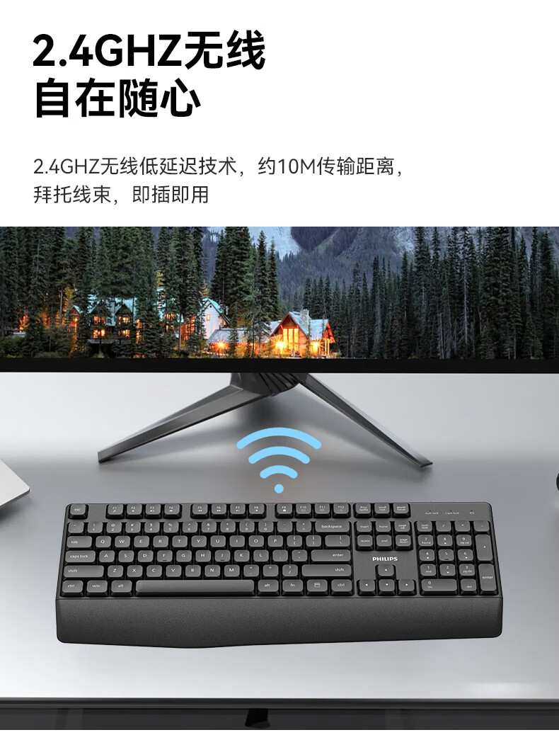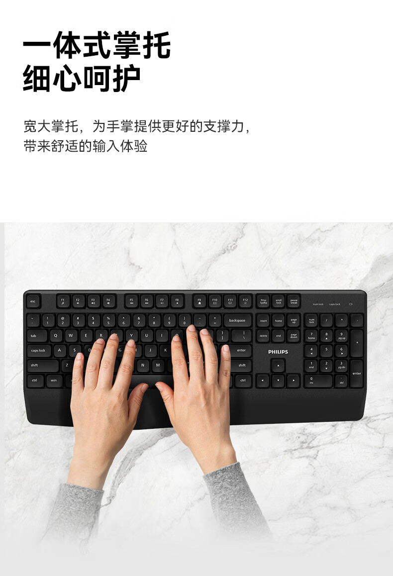飞利浦(PHILIPS)SPK6348无线键盘 带掌托 人体工学轻音家用办公商务键盘台式笔记本电脑通用企业采购 黑色