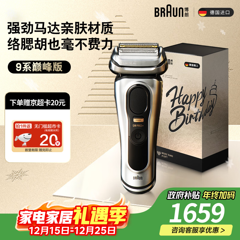 博朗9系巅峰版礼盒电动剃须刀整机德国进口往复式剃须刀刮胡刀男士送老公男朋友生日礼物 男