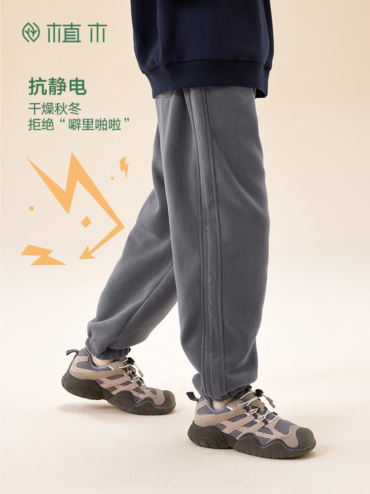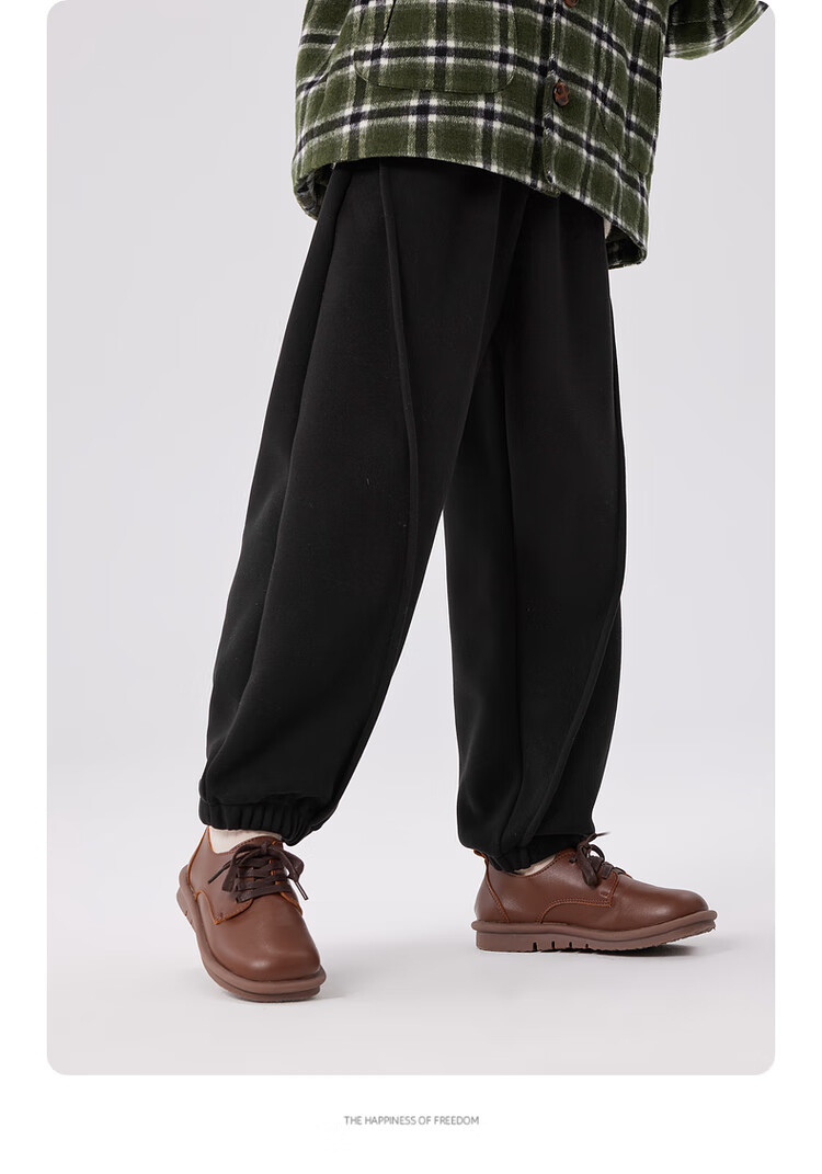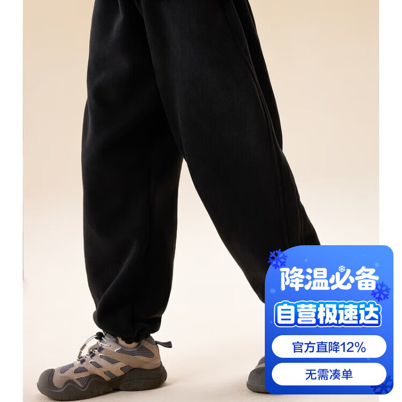 植木童装束脚男童女童长裤运动裤儿童休闲裤 黑色【奥利绒加厚】 110