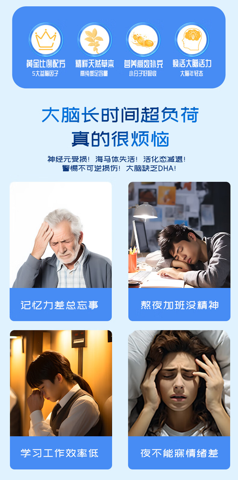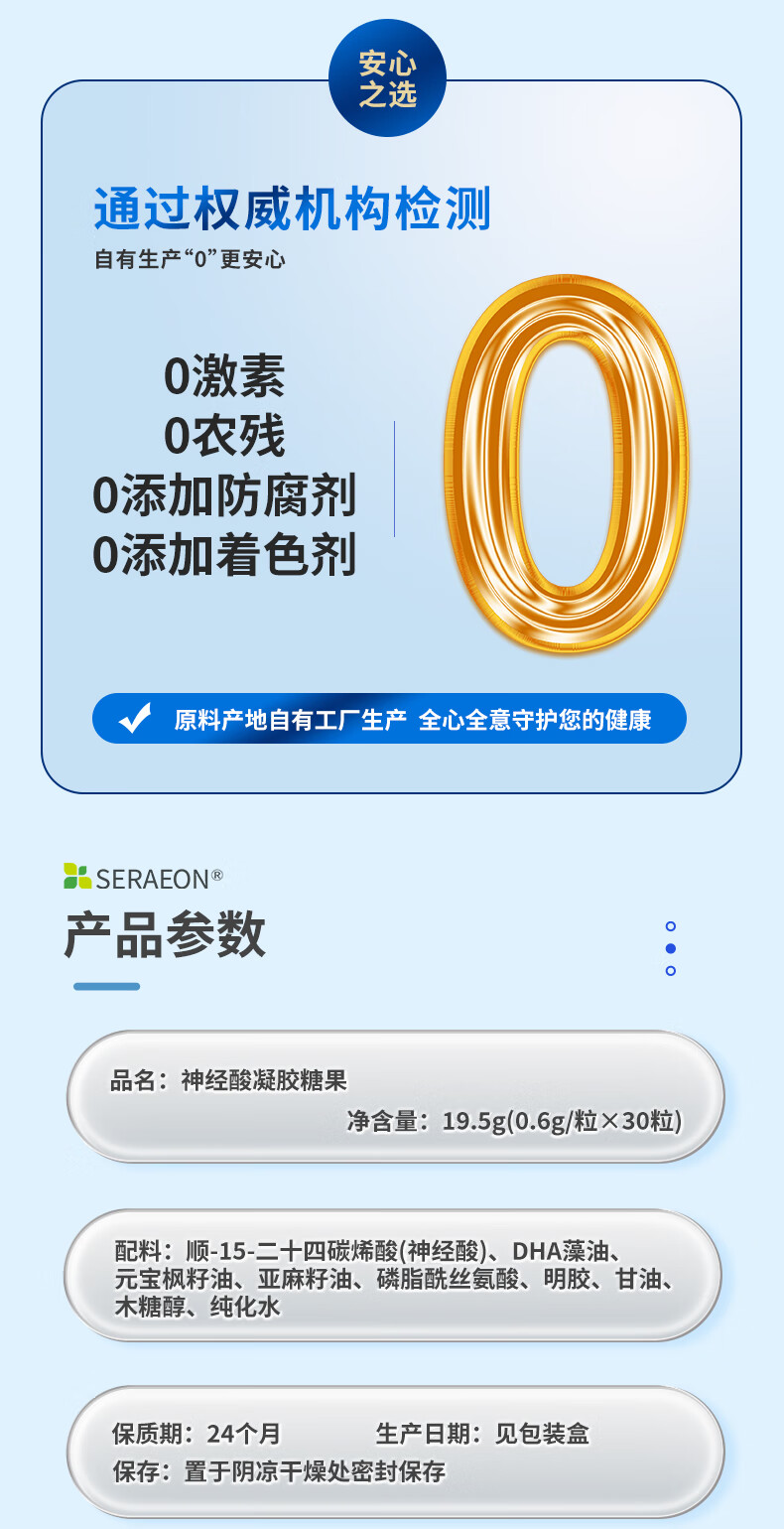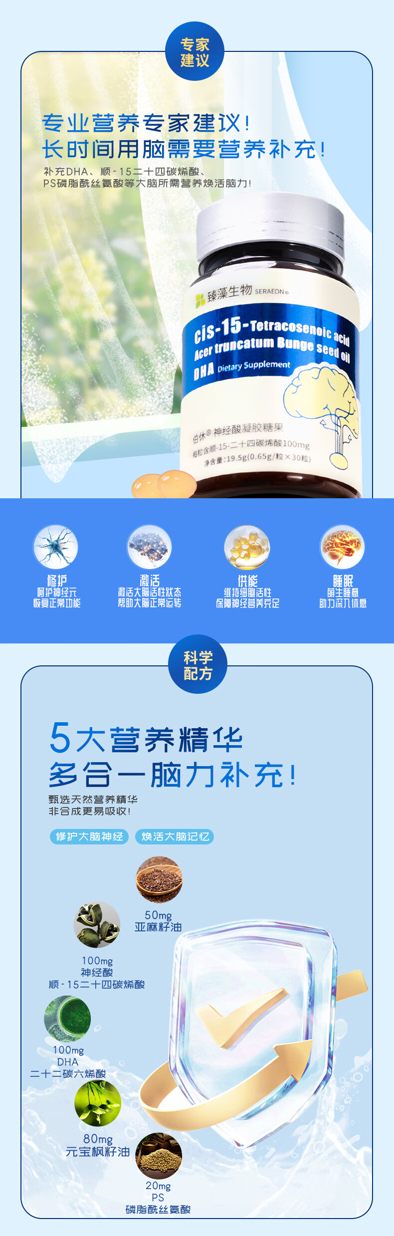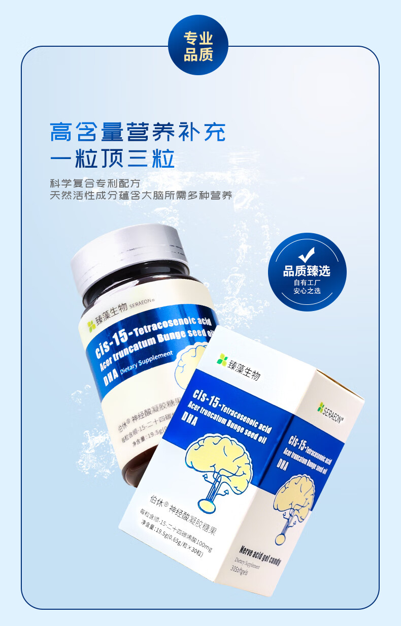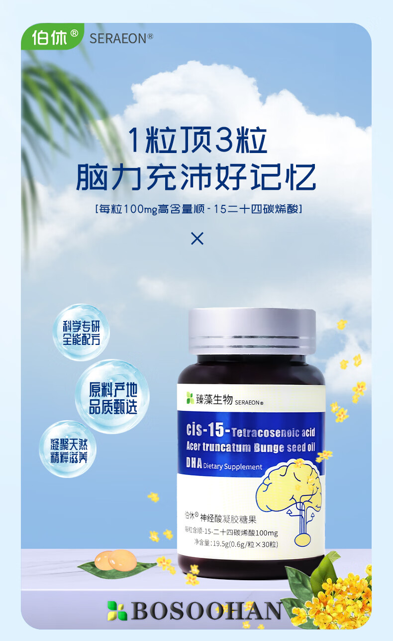 伯休100mg蓝款神经酸磷脂酰丝氨酸增强DHA藻油元宝枫子油软胶囊剂30粒 3瓶/30粒【周期装】