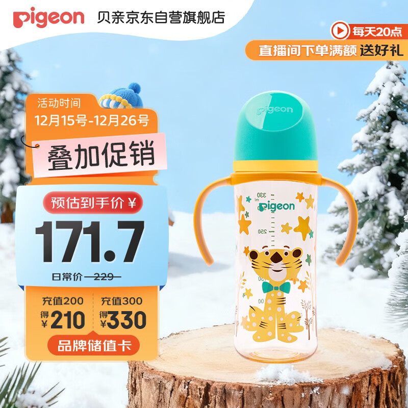 贝亲(Pigeon)PPSU双把手防胀气奶瓶330ml 绅士豹 L号奶嘴 6月+ AA223