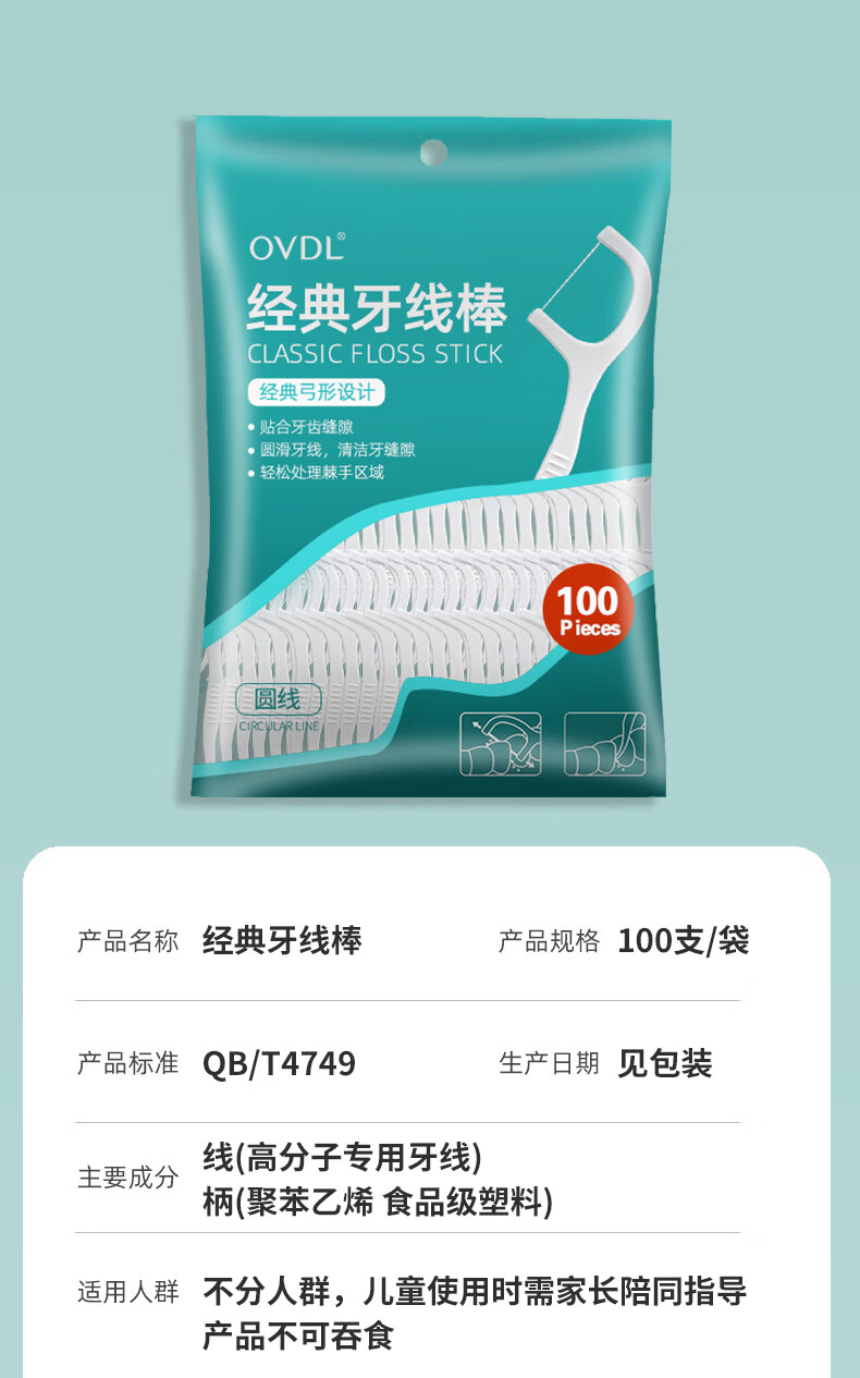 OVDL 牙线棒 超细圆线清洁齿缝牙签线高拉力剔牙神器100支*1包便携