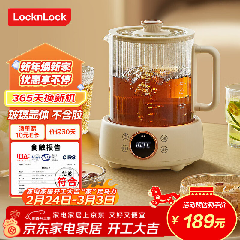 乐扣乐扣全玻璃养生壶电热水壶分体式烧水煮茶壶小花茶壶恒温加热保温迷你泡茶壶1L 炖煮款-含茶漏 1L