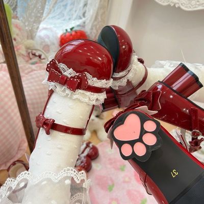 全款【甜心蜜桃2.0猫爪跟】夹心爱蜜桃原创Lolita蝴蝶结lo鞋单鞋【7天内发货】