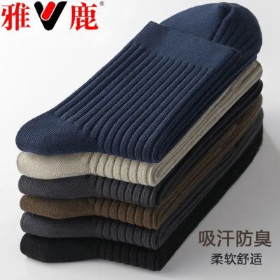 [雅鹿]男士棉款秋冬款袜子长袜中筒男士商务抗菌吸汗防臭透气运动袜