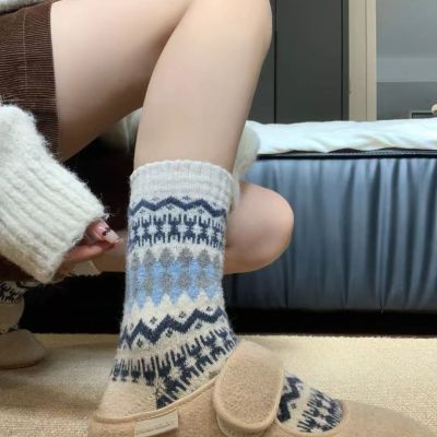 【5双装】费尔岛秋冬袜子女中筒保暖毛绒复古加厚袜子女秋冬【3天内发货】