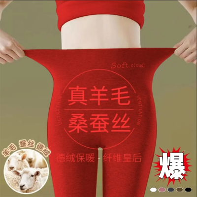 德绒羊绒蚕丝发热无痕秋裤女高腰棉裤加绒秋冬新款加厚收腹塑形