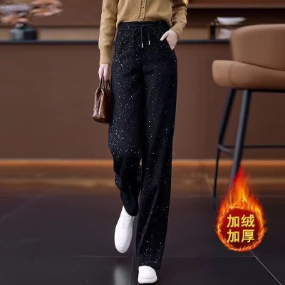 满天星亮闪闪裤女士新款高腰2025年秋冬款爆款加绒直筒遮肉休闲裤