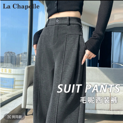 加绒毛呢阔腿裤女款2025新秋冬季弯刀裤休闲加厚灰色西装裤子