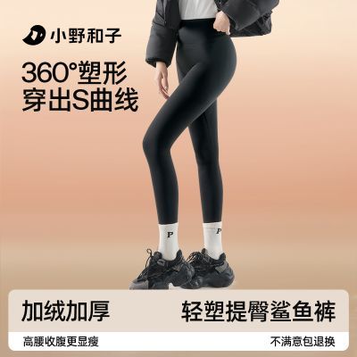 小野和子鲨鱼裤女外穿2024新款秋冬加绒厚高腰收腹提臀瑜伽打底裤