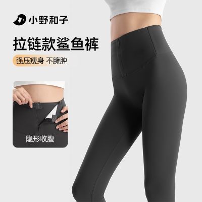 [小野和子]拉链鲨鱼裤女秋冬新款外穿显瘦高腰加绒瑜伽裤黑色打底裤