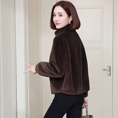 2026秋冬款年轻妈妈洋气皮毛一体短款外套中老年女装仿水貂绒立领