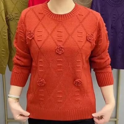 清仓秋季t网红气质新款甜美立体玫瑰花妈妈高档洋气小香风打底衫【10天内发货】