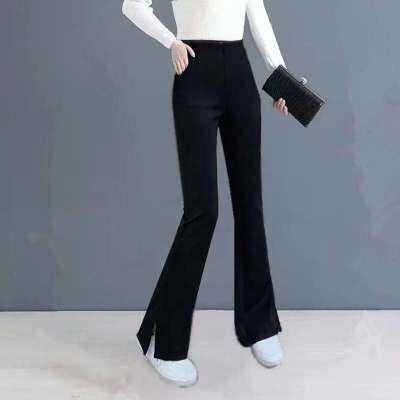 春秋洋气黑色裤子微喇裤显瘦新款百搭开叉喇叭裤显年轻外穿裤子