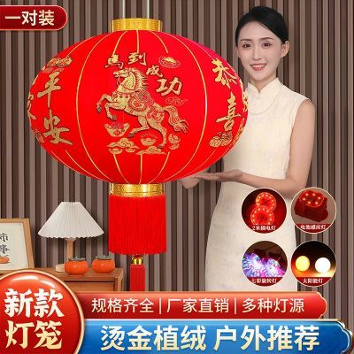 2026马年新款春节灯笼植绒长杆灯笼新年装饰户外灯笼乔迁阳台灯笼