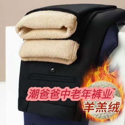 羊羔绒男士西裤秋冬弹力休闲裤高腰冬季抗皱宽松直筒加绒加厚裤子