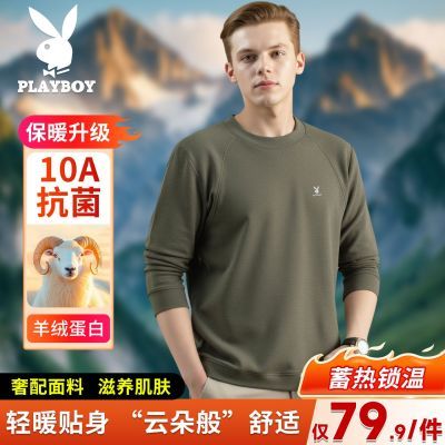 【羊绒蛋白纤维+10A抗菌+抗起球】花花公子秋男长袖圆领卫衣打底