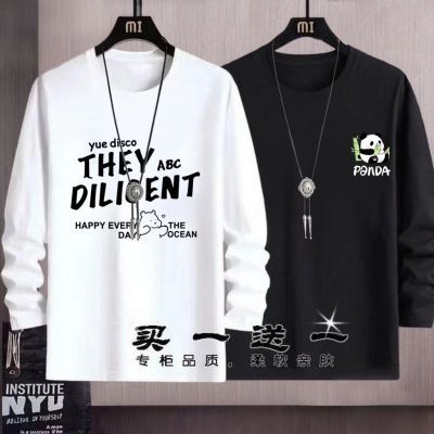 春秋季长袖t恤男韩版新款圆领港风ins学生休闲宽松打底衫男1/2件