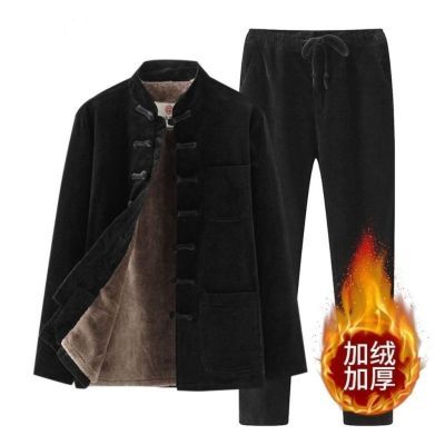 中国风唐装男休闲套装秋冬季民族加绒加厚复古盘扣中式外套两件套