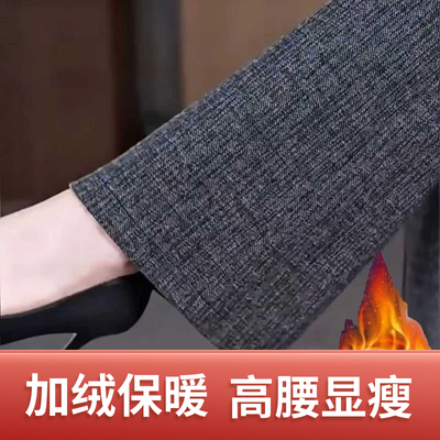 灰色微喇裤子女秋冬新款加绒加厚高腰百搭修身显瘦窄版休闲喇叭裤【3月23日发完】