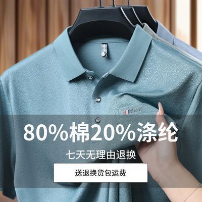 新款纯色男士T恤短袖POLO衫树皮花休闲口袋商务中年夏季翻领上衣