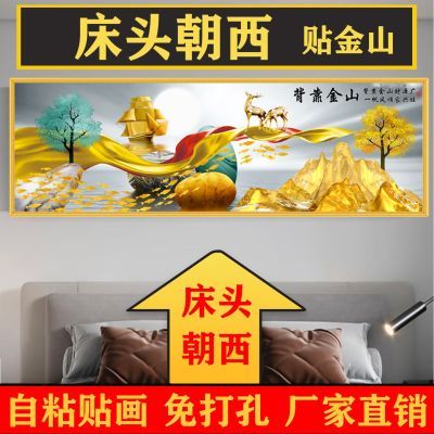 现代装饰画床头朝自助粘贴画贴配有荷花天鹅山水金山画自粘墙贴客