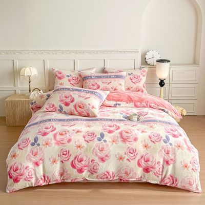 被套四件套加厚保暖双面珊瑚牛奶裙款双人床上用品冬季被罩