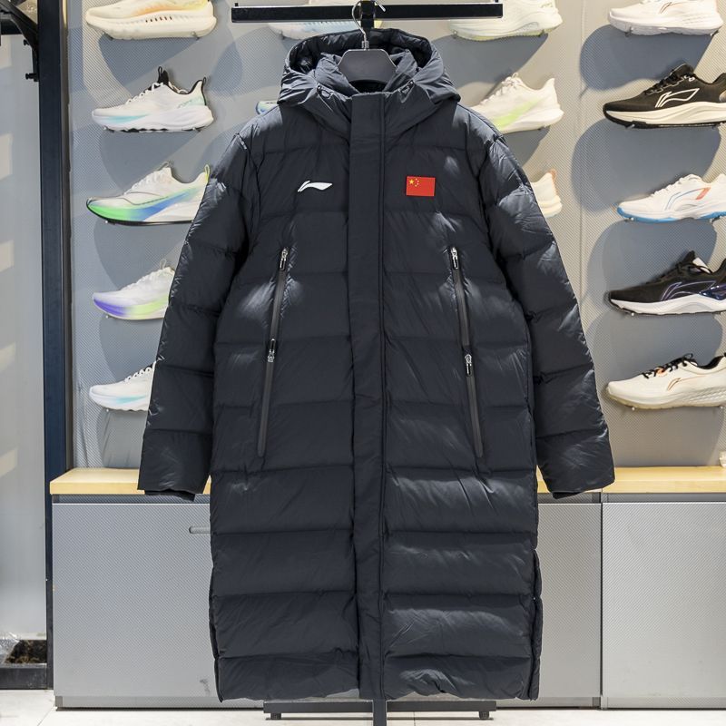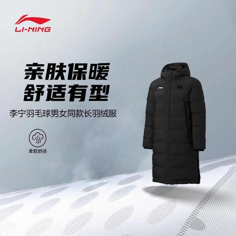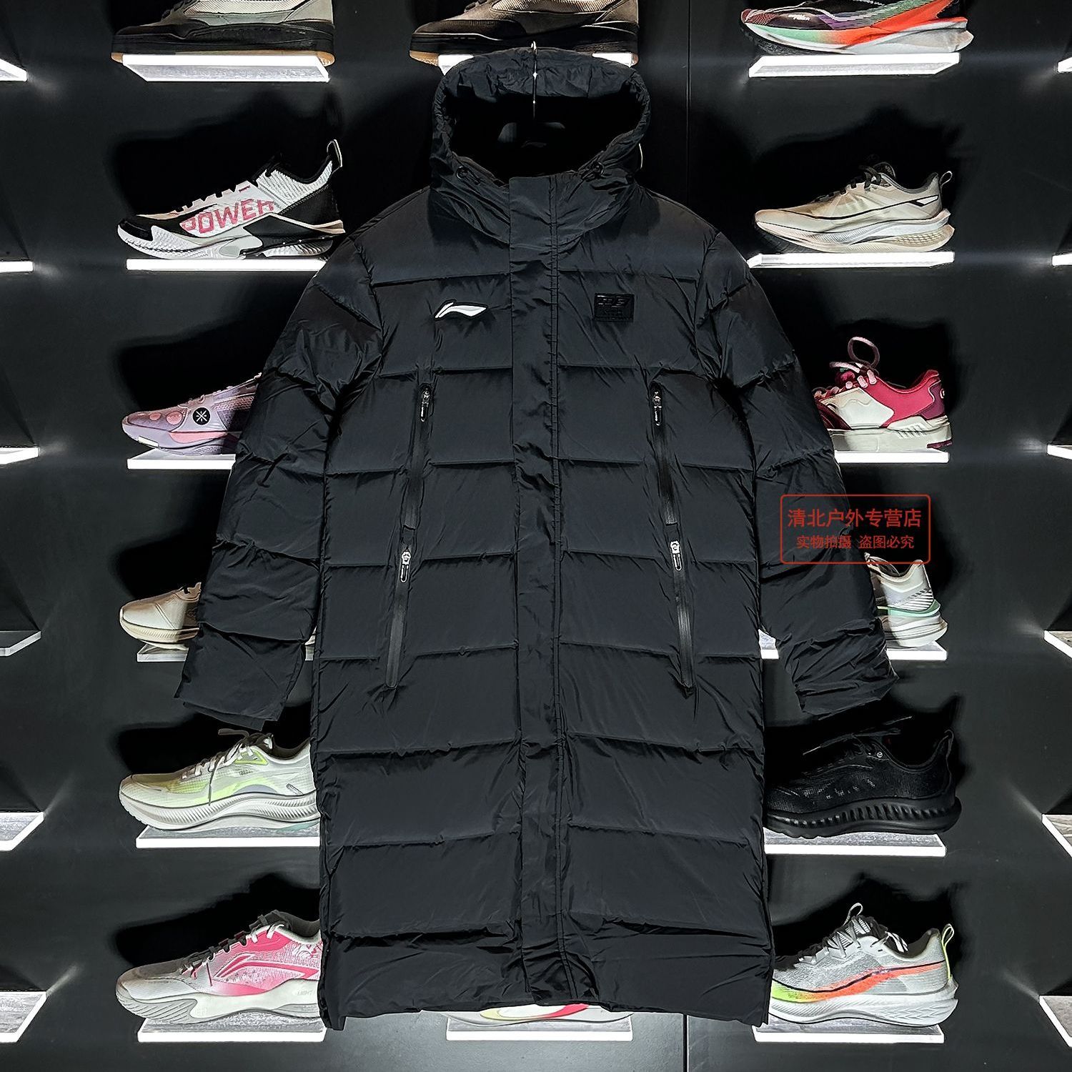 李宁羽毛球长款羽绒服男2025冬新款运动休闲保暖鸭绒外套 AYMV137