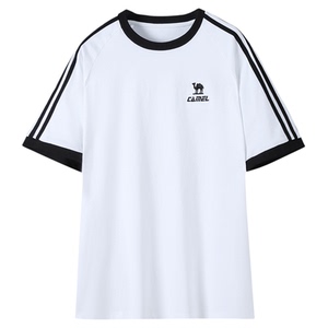 骆驼纯棉T恤男春夏季短袖圆领情侣新款复古宽松运动休闲上衣女