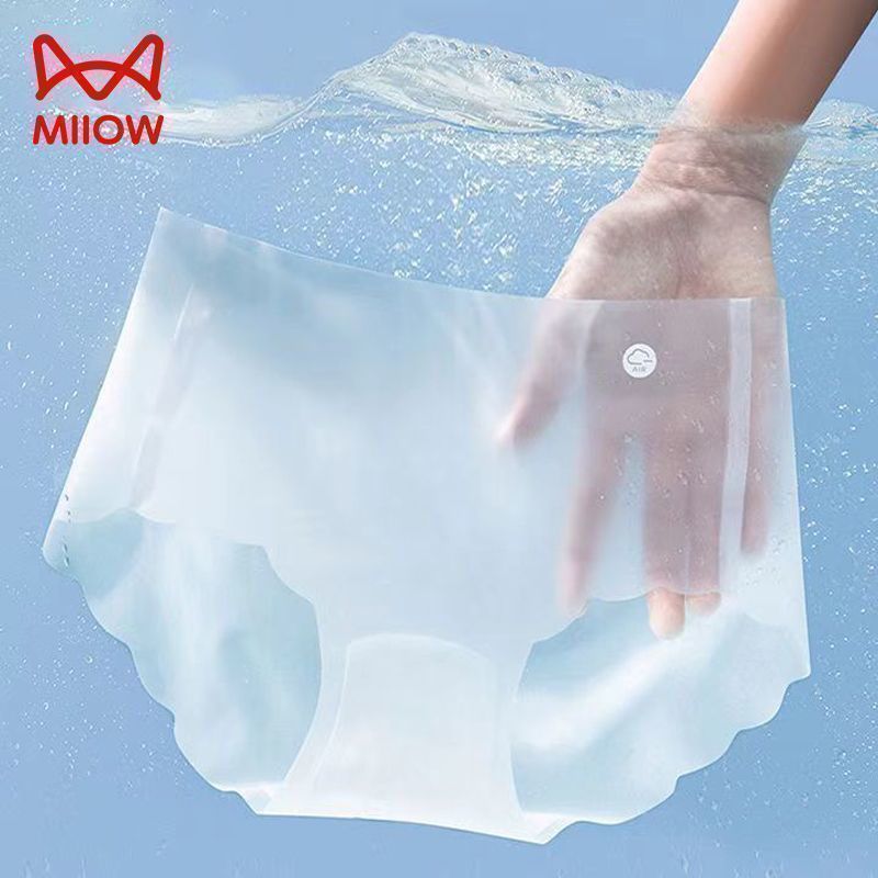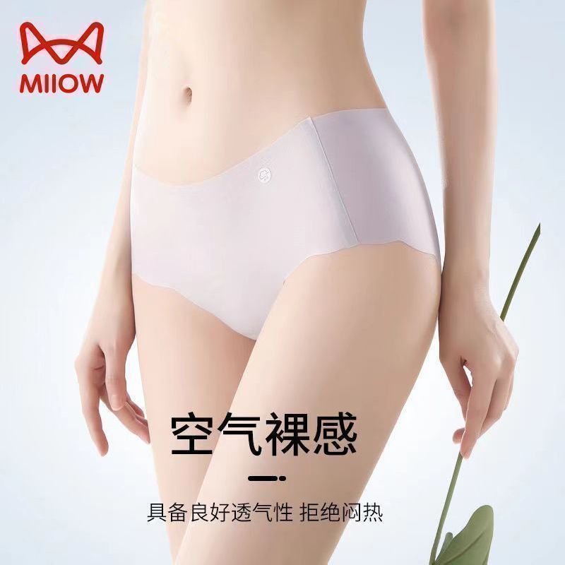 猫人女士内裤夏季冰丝超薄裸感凉爽蚕丝抗菌裆无痕中腰三角裤头