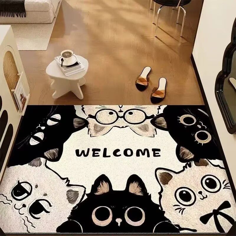 卡通猫咪入户门地垫门垫玄关垫耐磨水晶绒脚垫可裁剪进门门口地毯
