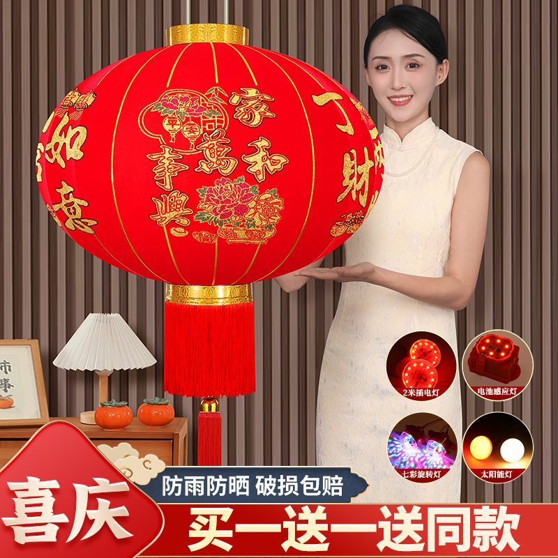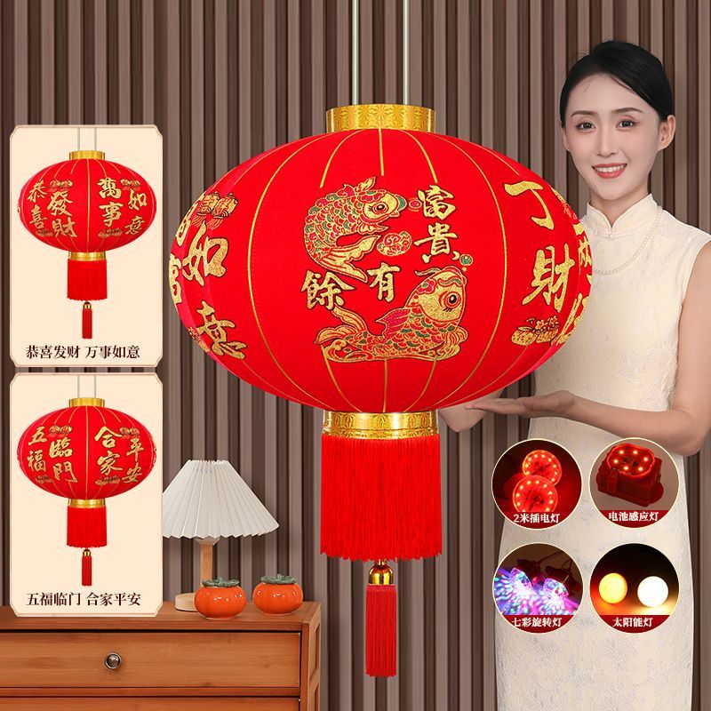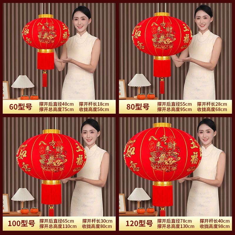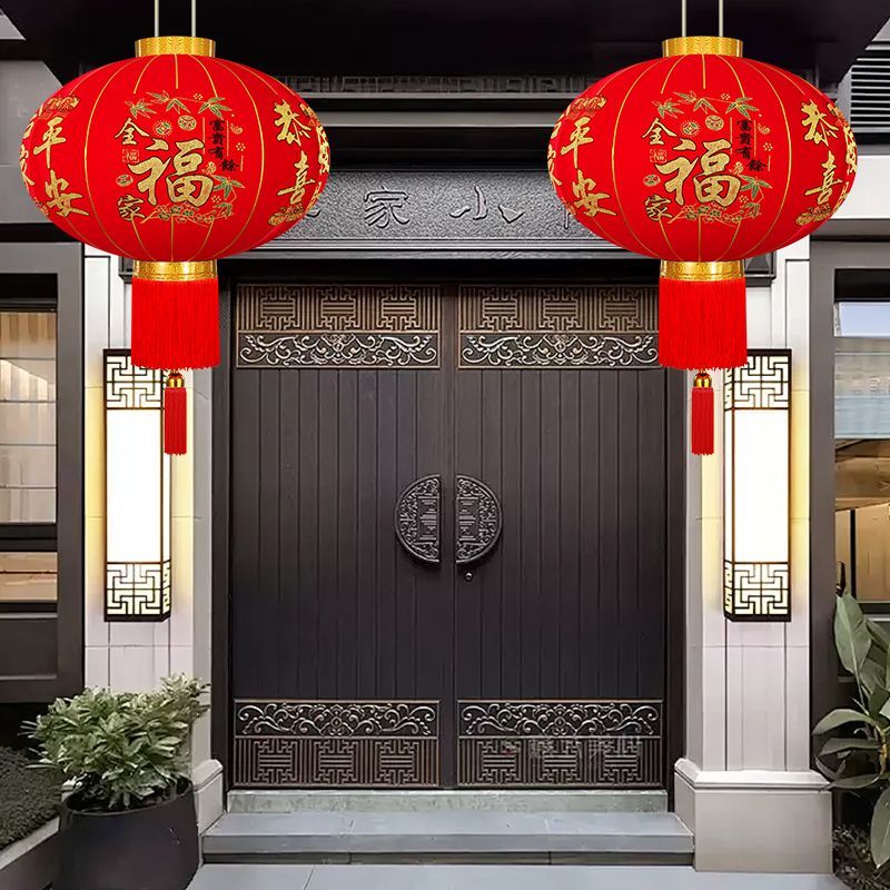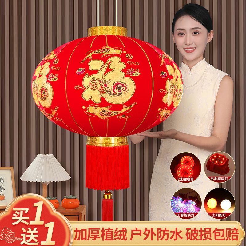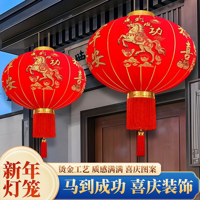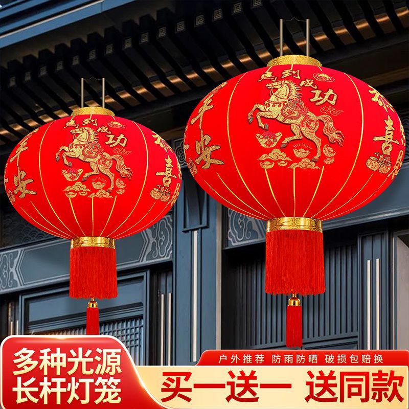 2026马年新款春节灯笼植绒长杆灯笼新年装饰户外灯笼乔迁阳台灯笼