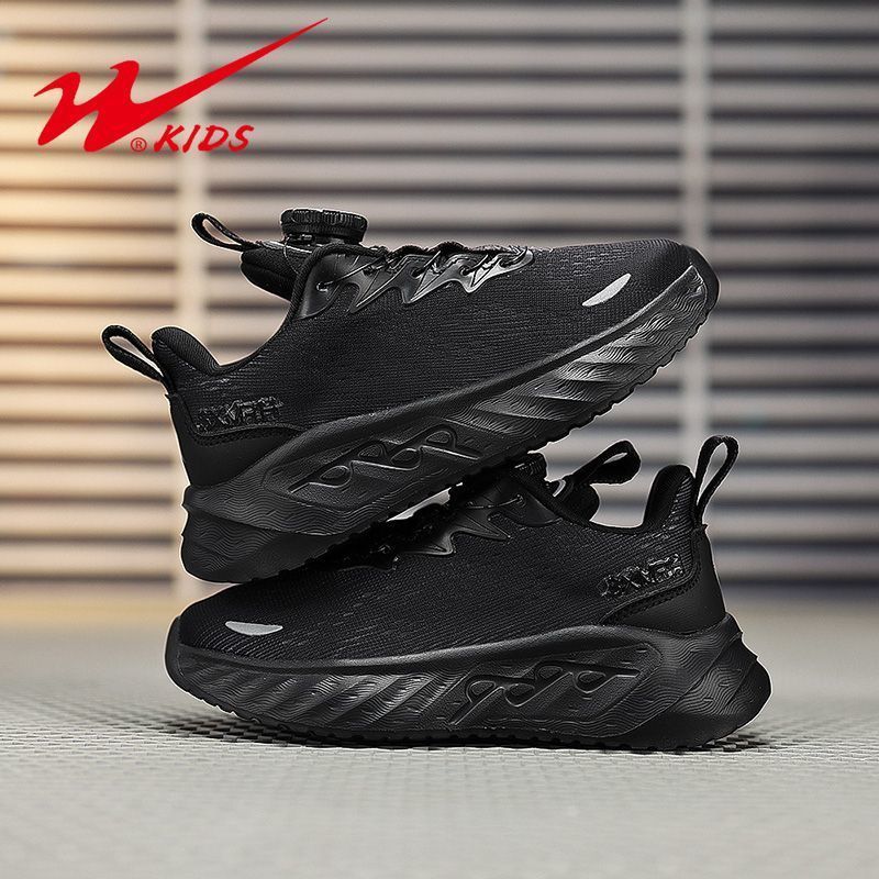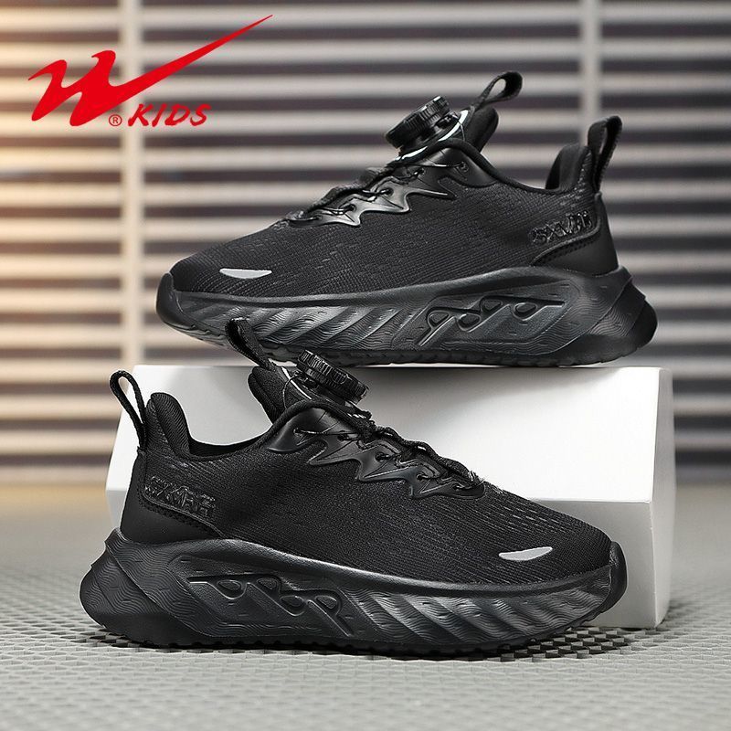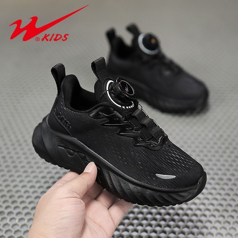 双星男童鞋子耐脏儿童黑色休闲鞋中大童春秋透气双网青少年运动鞋
