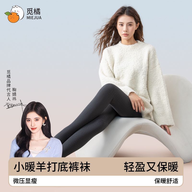 觅橘羊绒蛋白混纺打底裤保暖加绒纯色连踩脚女士秋冬格雷系连裤袜
