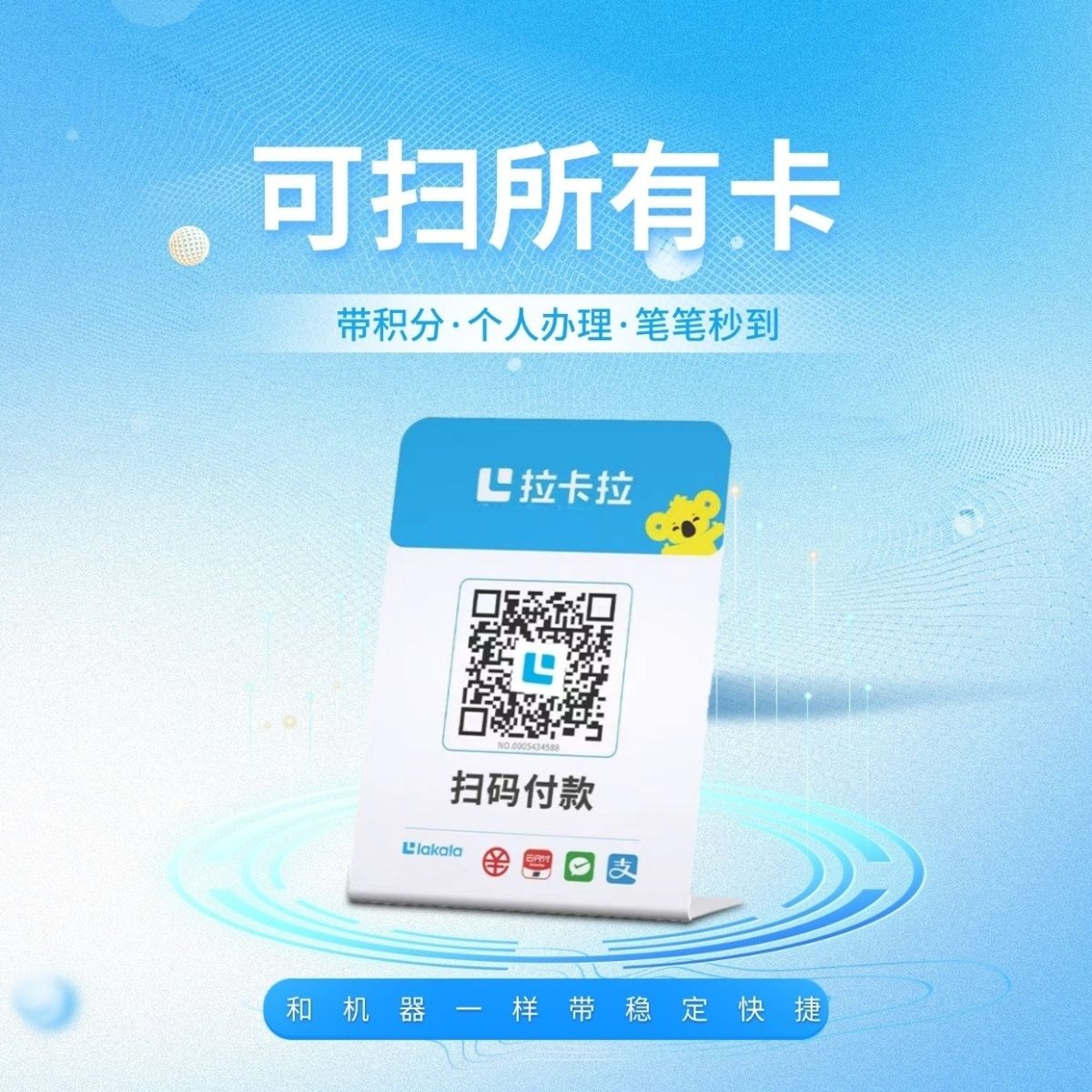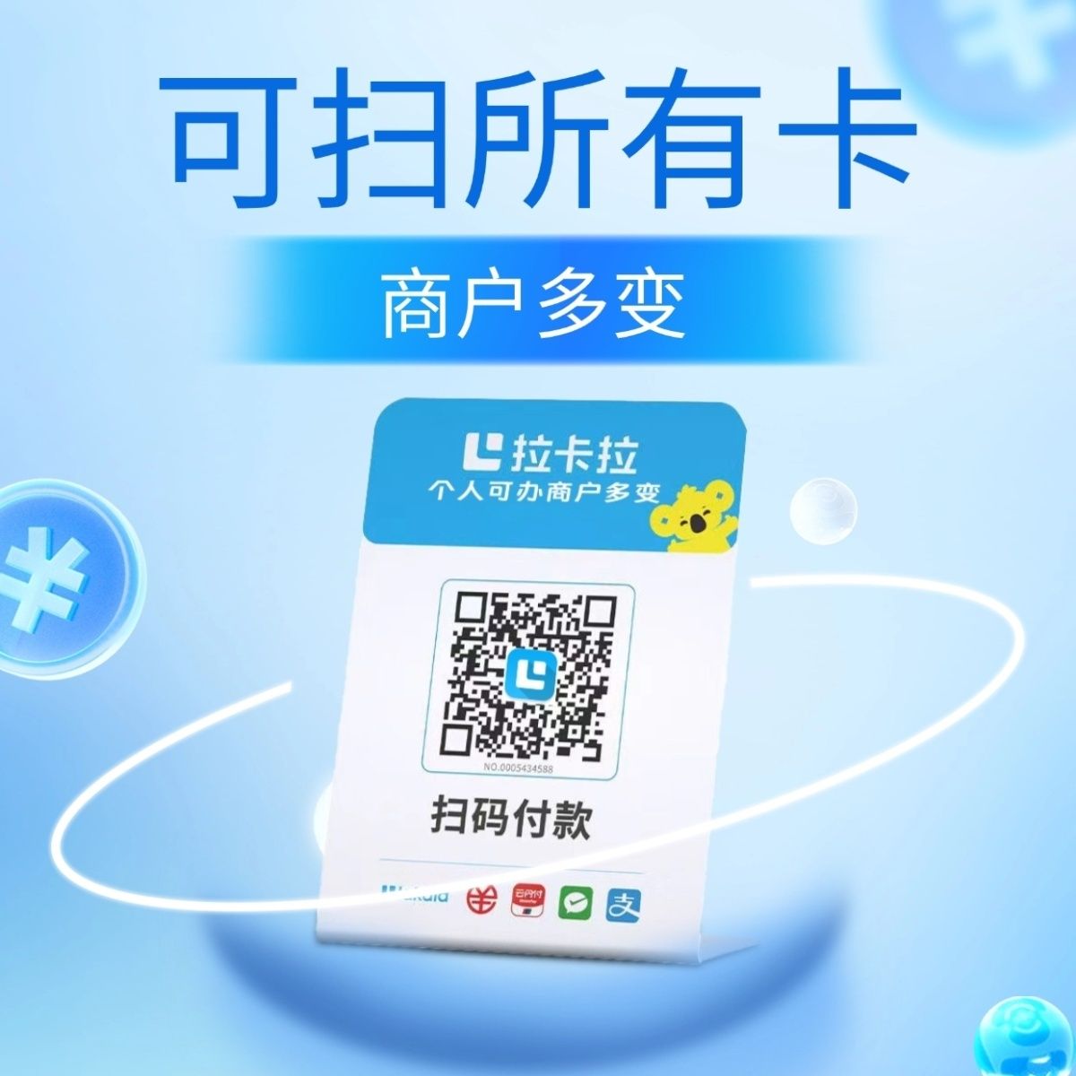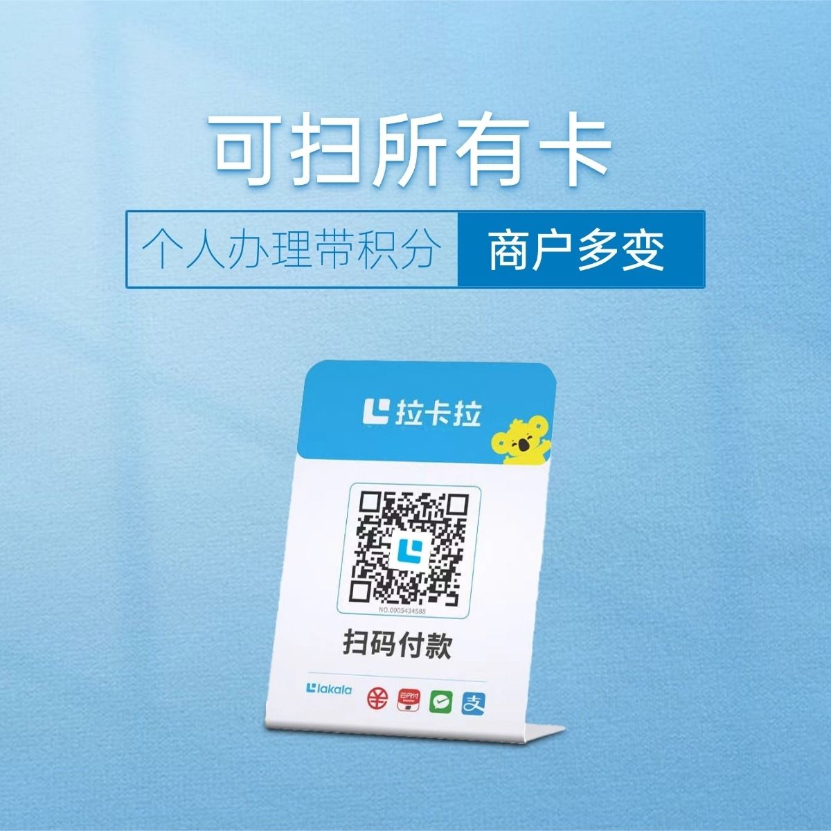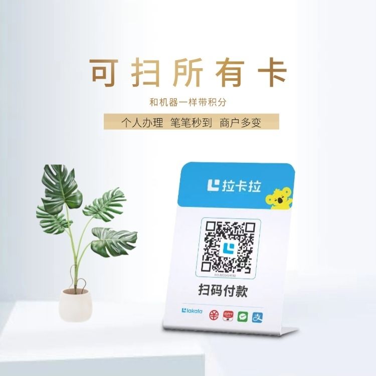 拉卡拉扫码收款移动升级收款牌子扫码支付收款码手持收银吊牌挂牌