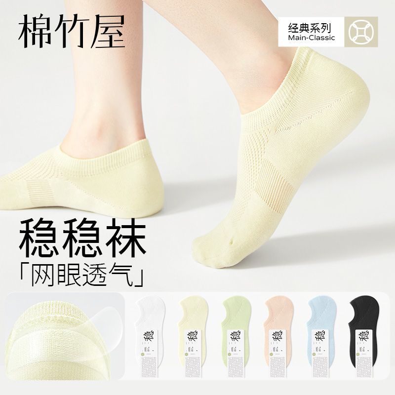 袜子女船袜夏季薄款防滑不掉跟抗菌纯棉纱线透气女士浅口隐形短袜